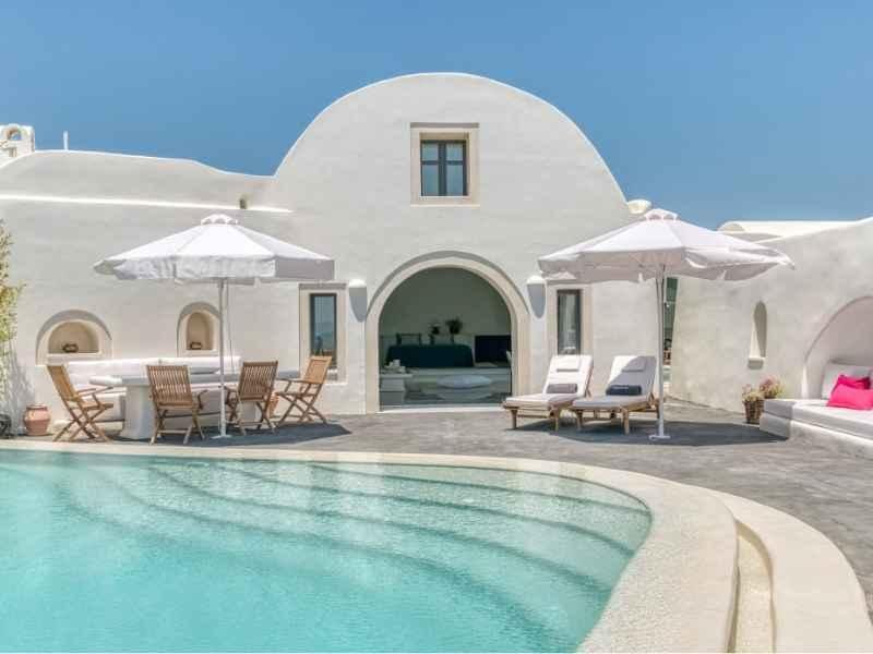 If peace and panoramic views are what you’re after, this Santorini cliffside hotel delivers. The infinity pool at Perivolas seems to flow straight into the deep blue Aegean Sea. The minimalist, whitewashed design contrasts beautifully with the dramatic volcanic cliffs, creating a serene haven for honeymooners and solo travelers alike.